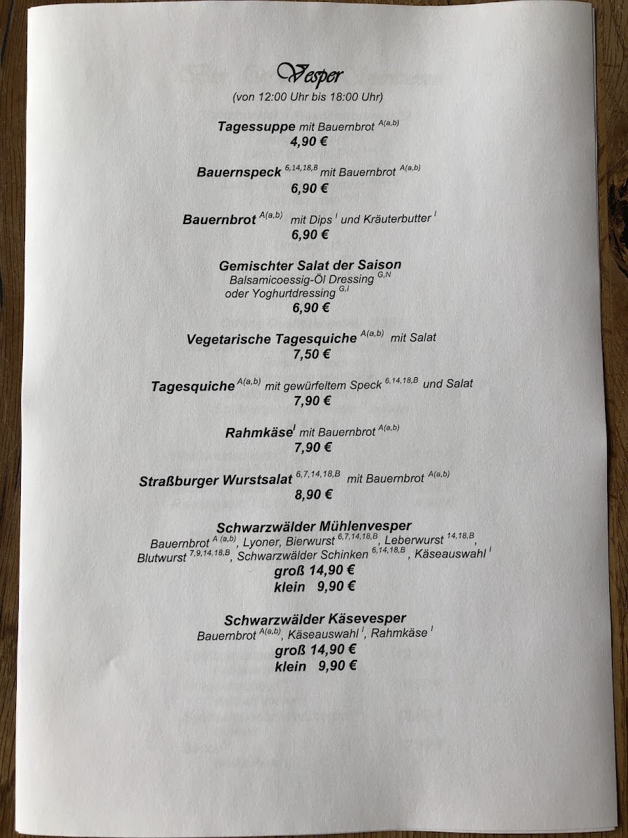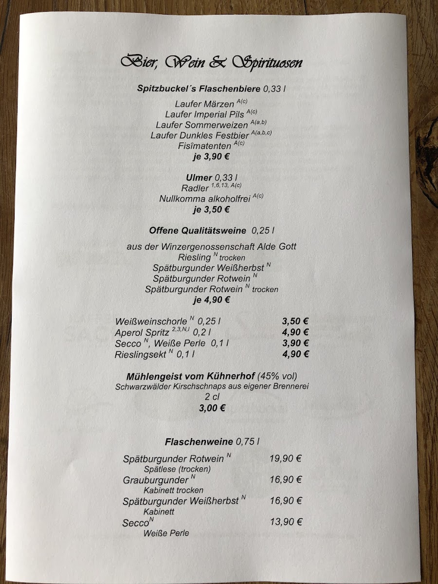 Mühlenstübel im Kühnerhof Menu